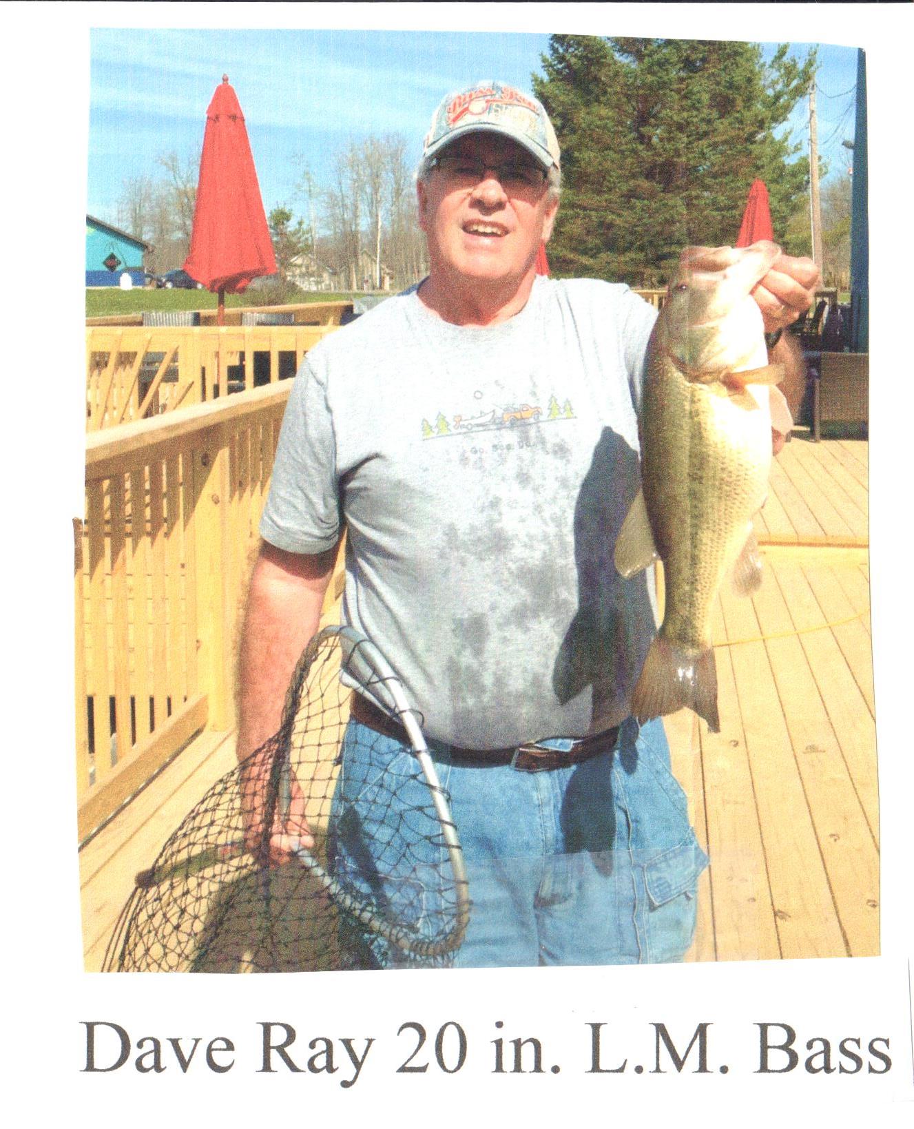 From all indications, the fish in the lake are doing well. There was very little winter kill. Bass Fishing has been very successful in April. The long fish for April was caught by David Ray, a 20in long large mouthed bass that weighed 4.36 lbs.