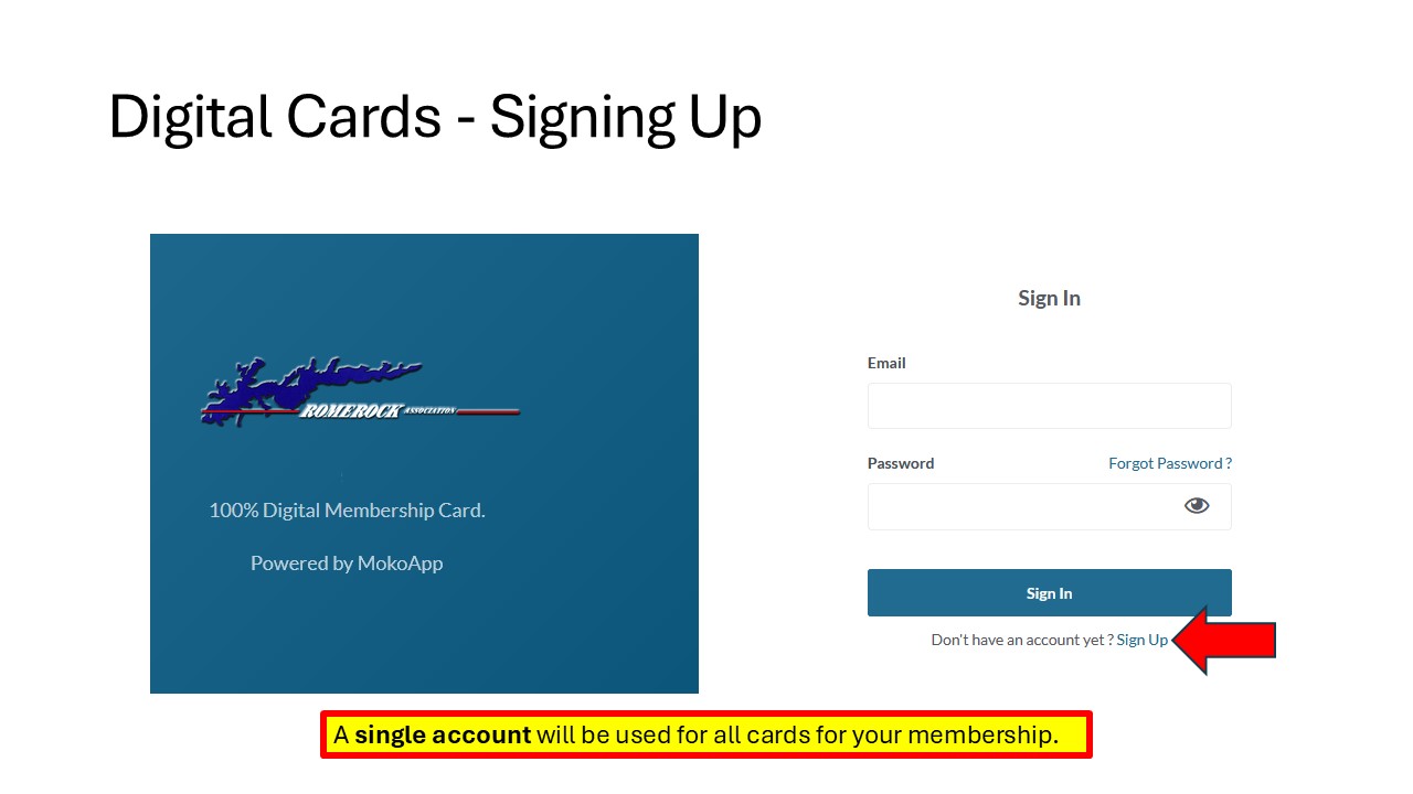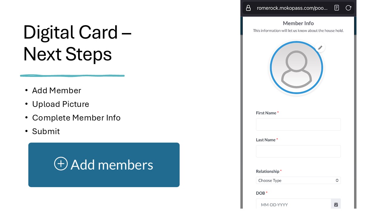 The RomeRock Association implemented a digital membership card system in 2024. Please use the following guide to get registered and add your family members.