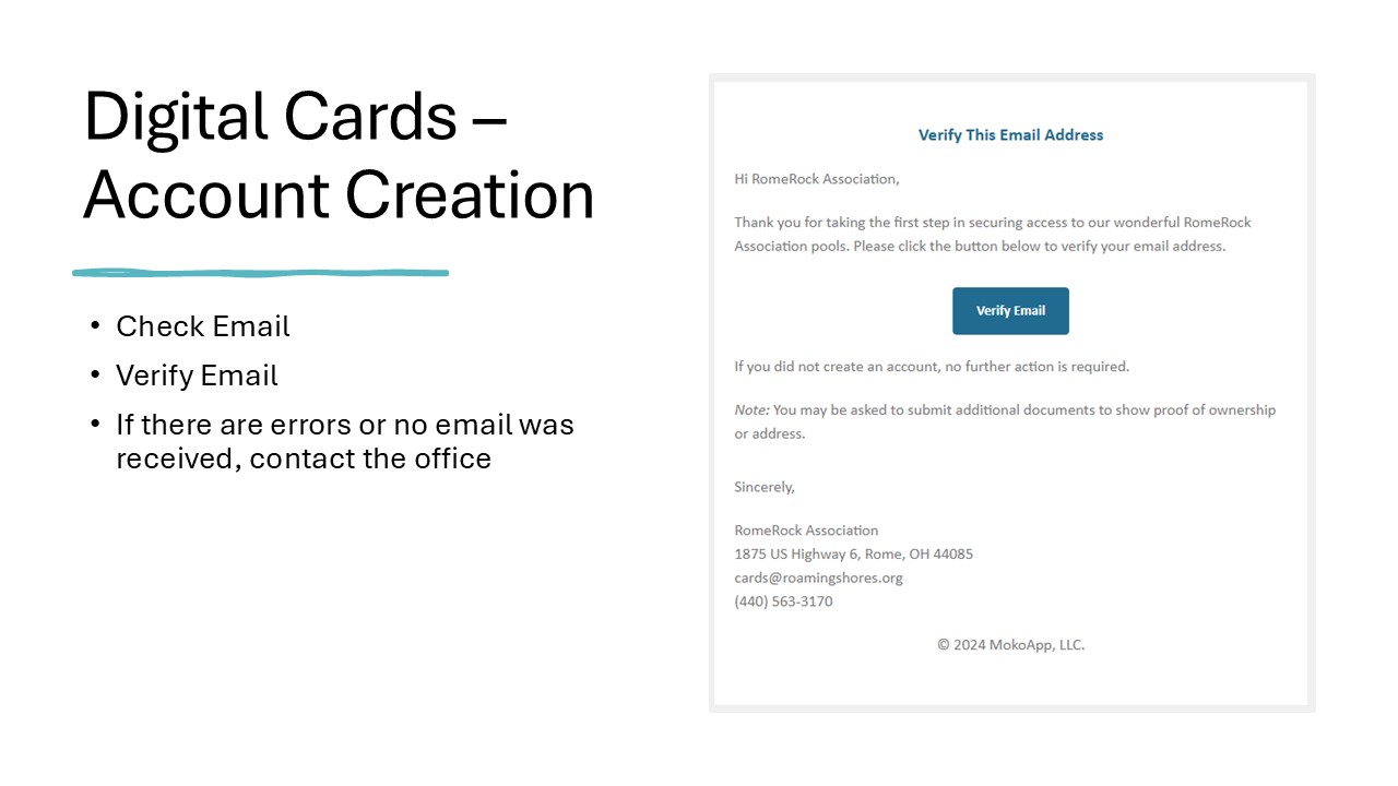 • After your application has been approved, you will receive an invitation to login to your account. This invitation will be emailed to the email address you provided during registration. To add additional family/household members to your account, login to your account at:  https://romerock.mokopass.com/